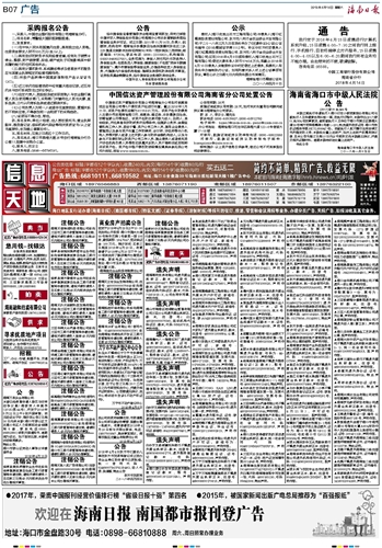 海南日报 广告 019 2018-04-141 2018年04月14日 星期六