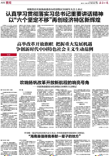第014版:潮起海之南 省外媒体聚焦海南建省办经济特区30年辉煌成就