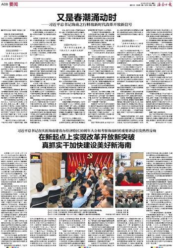 在新起点上实现改革开放新突破 真抓实干加快建设美好新海南