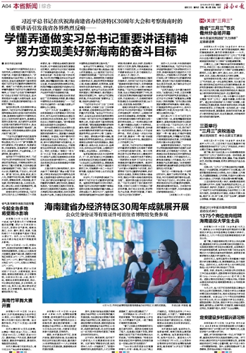 市民黄晓米与3岁半的儿子一同前来看展:“昨天是海南省30岁生日,今天带着孩子过来,一起了解我们海南的发展成就。”