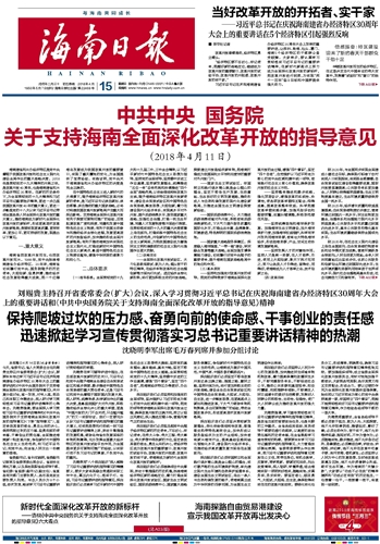 中共中央 国务院 关于支持海南全面深化改革开放的指导意见