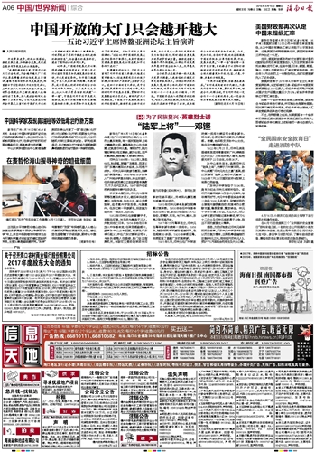 海南日报 中国/世界新闻综合 006 2018-04-151 2018年04月15日 星期日