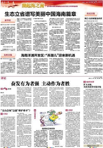 | 海南日报 潮起海之南 省外媒体聚焦海南建省办经济特区30年辉煌成就 009 2018-04-161 2018年04月16日 星期一 |