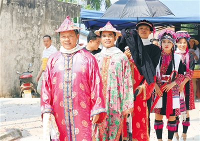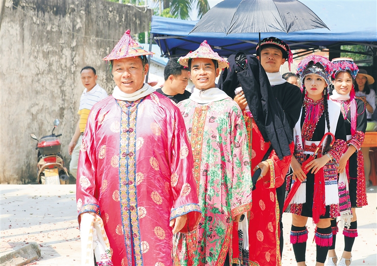 “三月三”节庆活动也被当地青年男女视为爱情节。在南圣镇举行的庆祝活动中,黎族苗族传统婚俗展示成为一大亮点,吸引了众多游客前来观看。这其中有想要了解黎族苗族传统婚俗的化妆师,也有正在拍摄海南少数民族特色文化纪录片的青年导演,他们在黎族传统婚俗的迎亲、苗族传统婚俗的拦路抢亲等环节中亲身感受到了不一样的民俗文化。