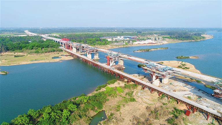 由铁四院代建,中铁建大桥局、十五局、十六局共同参建的文琼高速公路,是连接文昌航天中心和博鳌亚洲论坛国际会议中心的唯一一条快速通道。项目建成后,琼海到文昌两地之间的行车时间将缩短至半小时。
