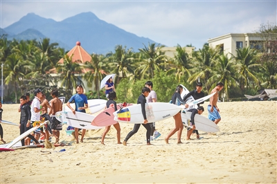 在万宁日月湾的森林客栈小住几日,远离城市的喧嚣,早晨被海浪叫醒,晚上抓虾捕蟹,或许是值得铭记于心的别样幸福。日月湾被称为世界冲浪胜地,黄头发蓝眼睛、黑头发黄皮肤、英文、普通话和海南话,奇妙而又和谐地交织在一起。拉网捕鱼、沙滩篝火、海礁徒步、抓螃蟹海钓、沙滩排球……这是客栈给出的最好体验。海面平静时,大家便下海抓鱼抓螺,回到岸上就是一顿美味的烧烤,或是去附近爬山。“第一次拉网捕鱼,我终于觉得自己走进了海南!”从湖北而来的客人李永亮说。
