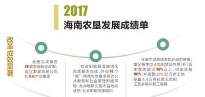 今年春节前,着力打造国家级热带农业示范区、热带农业休闲旅游体验区、农垦改革试验区和热带农业国际合作中心的桂林洋国家热带农业公园1期开始迎客;近日,投资87.7亿元的“海南农垦科技城”项目在海口市白水塘区域开工,将集大型科技、旅游、农业、休闲、生态保护、文化体育、商业、住宅于一体。
