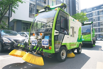 4月18日,无人驾驶清洁车队亮相上海市松江区,并在上海启迪漕河泾(中山)科技园试运营。该车队由一辆6米长的中型清洁车以及一辆3米长的小型清洁车组成,可自动启动、自动清扫、自动通过红绿灯、自动避开路边障碍等。新华社发