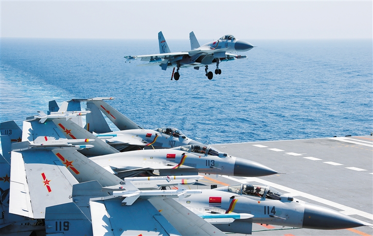 连日来,海军辽宁舰航母编队在南海海域持续展开侦察预警体系构建、电子对抗、对空作战、对海作战、对陆打击和反潜作战等课目训练,以高强度和高难度的实兵对抗训练进一步检验和提升编队体系作战能力,以大抓实战化军事训练的实际行动贯彻落实习主席“努力把人民海军全面建成世界一流海军”的殷切嘱托。