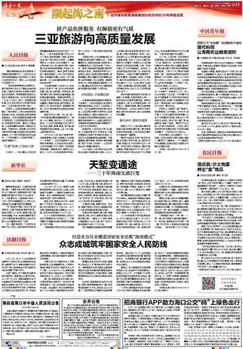 海南日报 潮起海之南 省外媒体聚焦海南建省办经济特区30年辉煌成就 011 2018-04-191 2018年04月19日 星期四