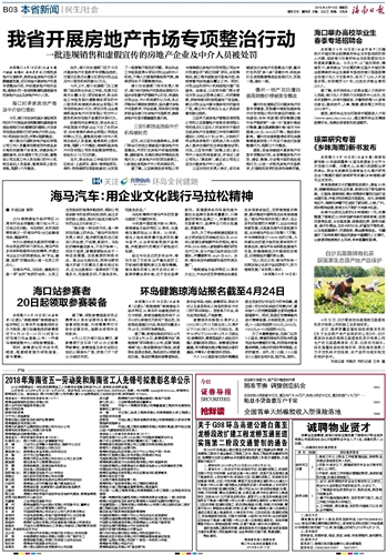 海南日报 本省新闻民生/社会 015 2018-04-191 2018年04月19日 星期四