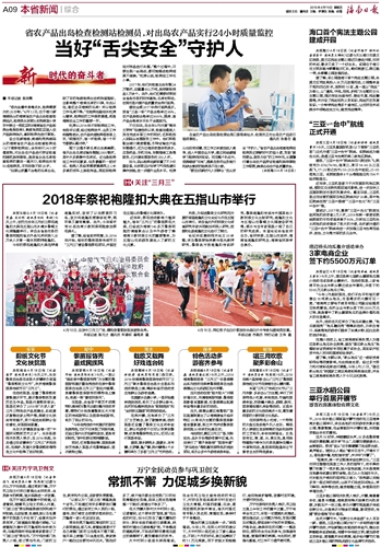 海南日报 本省新闻综合 009 2018-04-191 2018年04月19日 星期四