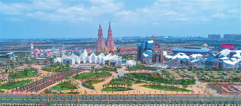 据了解,该项目位于海口市,一期工程占地2160.45亩,包含主题乐园、市政道路、园林绿化等。目前,主体建筑封顶,外立面工程进入收尾阶段。同时,项目一期17部大型游乐设备安装基本完成,正在调试中。