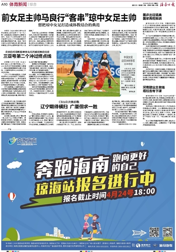 海南日报 体育新闻综合 010 2018-04-221 2018年04月22日 星期日