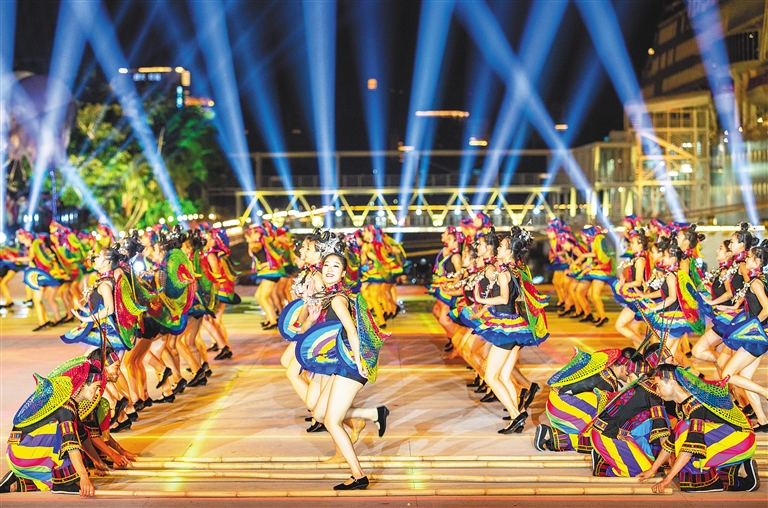 每一个民族,都有属于自己民族的舞蹈。每一种民族舞蹈,都记载着一个民族的文化历史印记。在美丽的海南岛,在海南黎族苗族传统节日三月三之际,离不开黎族传统舞蹈表演,而流传最为广泛的就是欢快的竹竿舞,传统意义上称之为打柴舞,是黎族最古老、最受欢迎的舞种之一。除了打柴舞,一些源于生活和生产劳动,同样具有浓郁的生活气息的舞蹈,如老古舞,咚铃伽、舂米舞、转石舞等,它们带着浓郁的地域文化风情与少数民族风情,留存着浓厚的历史印记。