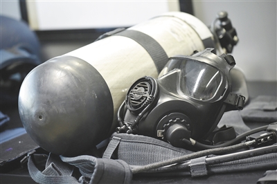 这是4月20日在荷兰海牙禁止化学武器组织(禁化武组织)总部拍摄的氧气瓶和防毒面具。