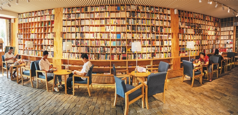 解放西路新华书店在二楼为读者阅读提供了一些桌椅。记者看到,一些中小学生正在桌前看书、做作业。海口高中生林宇告诉记者,书店很安静,他平时喜欢到这里做完作业看看书再回家。