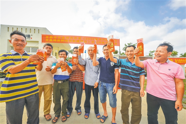 据了解,此次参与分红的均是文昌“2015年年产650万只文昌鸡苗种鸡场项目”养殖户。该项目由文昌市农业综合开发办和海南传味文昌鸡产业股份有限公司共同推进,采用“公司+农户+市场”新型农业发展模式。传味公司统一提供种苗、饲料、防疫、管理,并保价回收所有出栏鸡,农户仅提供劳动力及饲养场地。根据这种合作模式,养殖户年均收益可达8万元至10万元。
