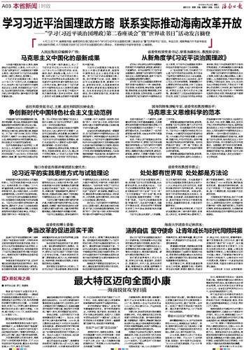 学习习近平治国理政方略 联系实际推动海南改革开放