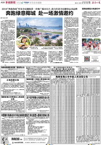 海南日报 关注奔跑海南环岛全民健跑 008 2018-04-241 2018年04月24日 星期二