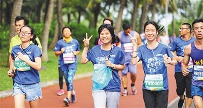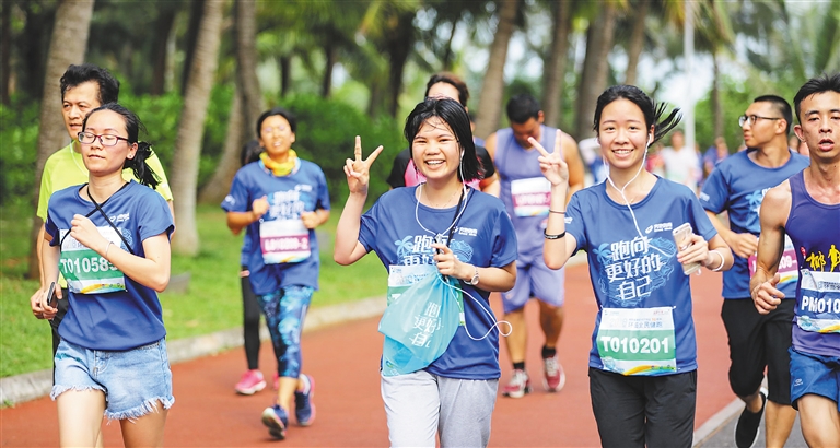 本次比赛,4000余名参赛者在奔跑中“跑向更好的自己”,其中有特色跑团、企业跑团、情侣组,也有一家三代的亲子跑团,囊括了各个年龄段的人群。在全民参与的同时,弱化了赛事竞技性,增强群众性、参与性和娱乐互动性,为广大“跑友”打造了一场时尚浪漫、无与伦比的精彩派对,让海口市民共享城市更新及改革发展成果。