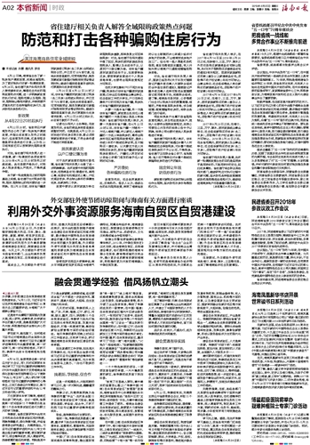 在中国(上海)自由贸易试验区考察学习中,海口海关副关长陈针注意到,上海自贸试验区深化“一线放开、二线安全高效管住”贸易便利化措施,推出了“先进区、后报关报检”“一区注册、四地经营”“十检十放”等一系列创新举措。“海南可以根据自身发展需要,将一些举措拿来用。”
