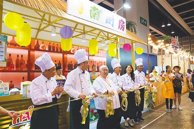 60平方米的独立展馆在会场显得非常醒目,针对港人热爱享受生活“好食好玩”的兴趣点,这个“海南厨房”突出海南夜市元素,搭配抢眼的灯笼,装上具有夜市特色的霓虹灯招牌,让整个展馆从远处就能抓取观众眼球。