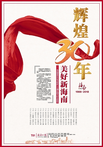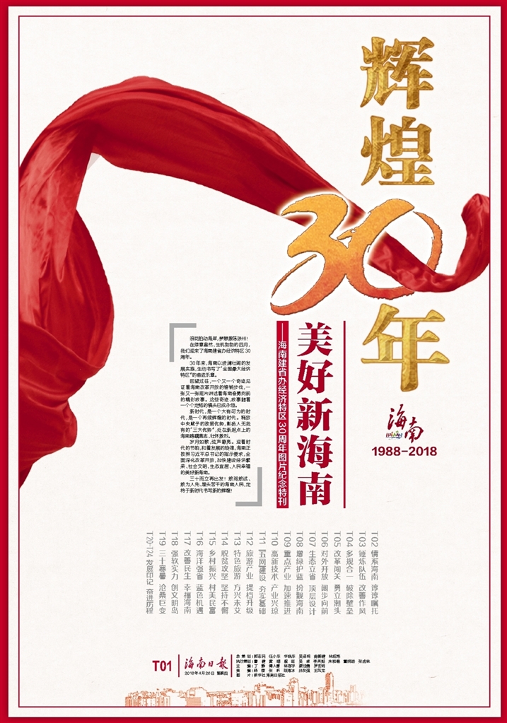 在绿意盎然、生机勃勃的四月,我们迎来了海南建省办经济特区30周年。