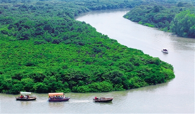 “多规合一”改革确定了生态保护和资源消耗的控制性目标,划定并严守生态保护红线,从根本上遏制“无序开发”“无限制扩张”等现象。图为生机盎然的东寨港红树林自然保护区。