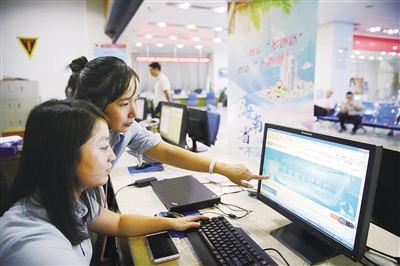 图②为在省政务中心服务窗口,工作人员进行全流程互联网“不见面审批”操作。