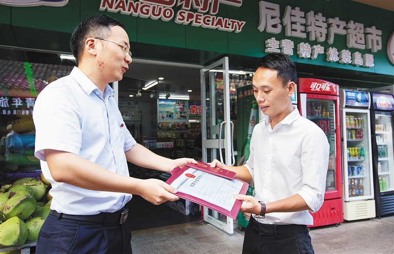 图③为2017年9月1日,三亚优化政府服务,发放全省首张电话申报“不见面”许可证。