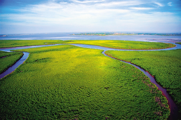2016年,省人大常委会通过《关于划定海南省生态保护红线的通告》,划定陆域生态保护红线总面积11535平方公里,占陆域面积33.5%,划定近岸海域生态保护红线总面积8316.6平方公里,占海南岛近岸海域总面积35.1%。图为海口东寨港保护区内郁郁葱葱的红树林。