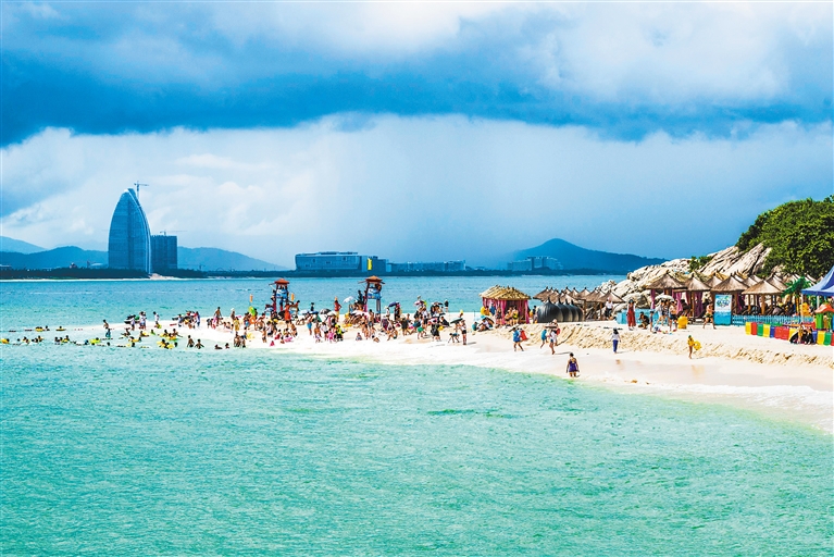 旅游产业是海南的龙头产业之一。近年来,海南的旅游收入和旅游人数均保持快速增长。过去5年,随着全域旅游示范省创建顺利开展,海南旅游空间布局不断优化,开发培育一批新的旅游业态和产品,旅游市场整治成效显著,旅游产业发展取得了重大成就,年接待游客总人数从2010年的2587万人次跃升到去年的6745万人次,旅游总收入从257亿元增长到812亿元。2017年入境游客突破百万人次,提前3年完成年接待百万人次入境游客目标。图为游客在三亚蜈支洲岛游玩。