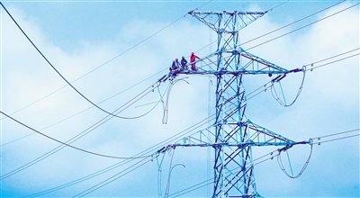 近年来,海南加快推进智能电网、电网改造、管网下地等工作,推进新一轮电网改造升级,完成了246个小城镇、中心村电网建设与改造。图为电力工人正在改造电网。