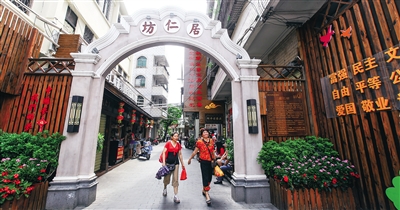 2015年,海口市提出创建“全国文明城市”和“国家卫生城市”,经过近3年的努力,2017年7月海口市荣获“国家卫生城市”称号。11月,海口、琼海获全国文明城市称号,实现了海南全国文明城市创建零的突破。图为海口市小街小巷改造的示范点居仁坊。