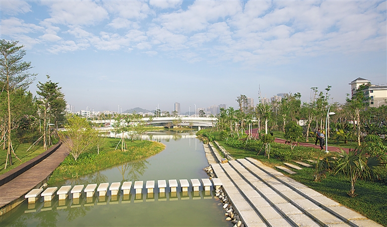 2015年6月,三亚成为全国首个“城市修补、生态修复”试点城市。三亚在“双修”中,生态修复以山体、河流、海岸的修复为重点,城市修补以城市形态轮廓、建筑色彩、广告牌匾、绿化景观、夜景亮化以及拆除违规建筑等六方面工作为重点抓手。图为三亚丰兴隆生态公园。