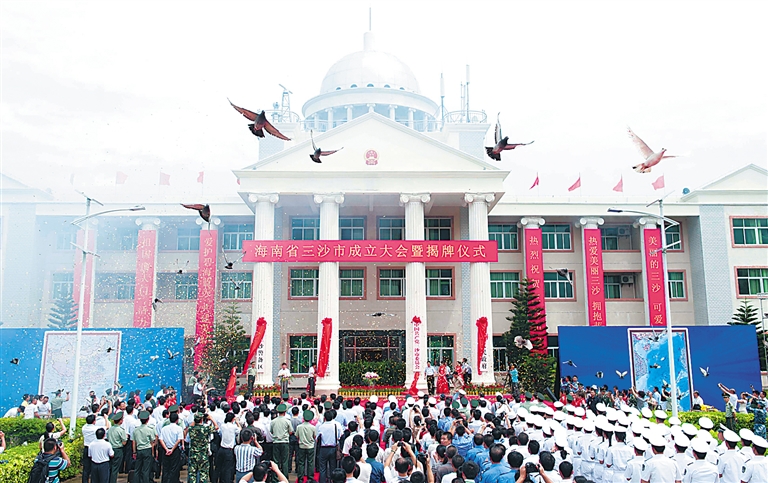 7月24日,海南省三沙市成立大会暨揭牌仪式在三沙市首府所在地永兴岛举行。三沙市的设立,标志着海南在国家海洋战略中的作用进一步凸显。