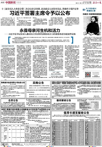 海南日报 中国新闻综合 010 2018-04-281 2018年04月28日 星期六