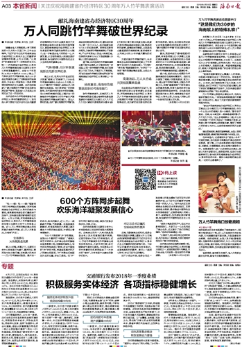 第003版:关注庆祝海南建省办经济特区30周年万人竹竿舞表演活动