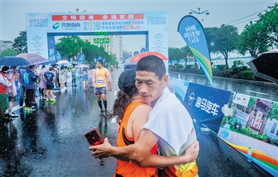 10公里女子组第一个冲过终点的选手是张爽。完赛后,她兴奋地谈起了感受:“雨中奔跑,体验不错。一路上,没有看到选手放弃,虽然天气不好,但大家觉得坚持下来就是胜利。”