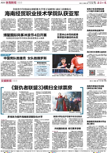海南日报 体育新闻综合 004 2018-05-011 2018年05月01日 星期二