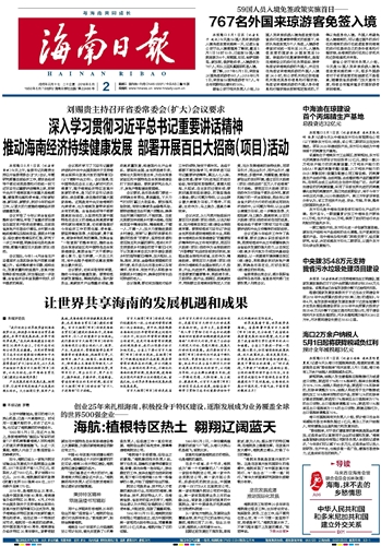 海南日报 头版 001 2018-05-021 2018年05月02日 星期三