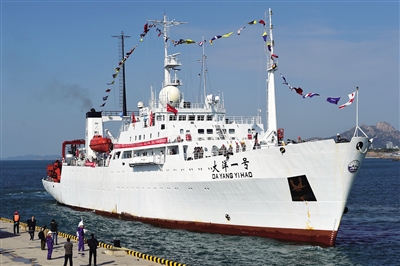 5月3日,“大洋一号”驶入青岛市国家海洋局北海分局科考基地码头。当日,我国远洋科考功勋船“大洋一号”完成“海龙”“潜龙”系列潜水器海试任务后,返回青岛母港。“海龙”“潜龙”系列潜水器在本航次共完成12次下潜,获得大量试验数据和丰富调查资料。新华社记者 李紫恒 摄