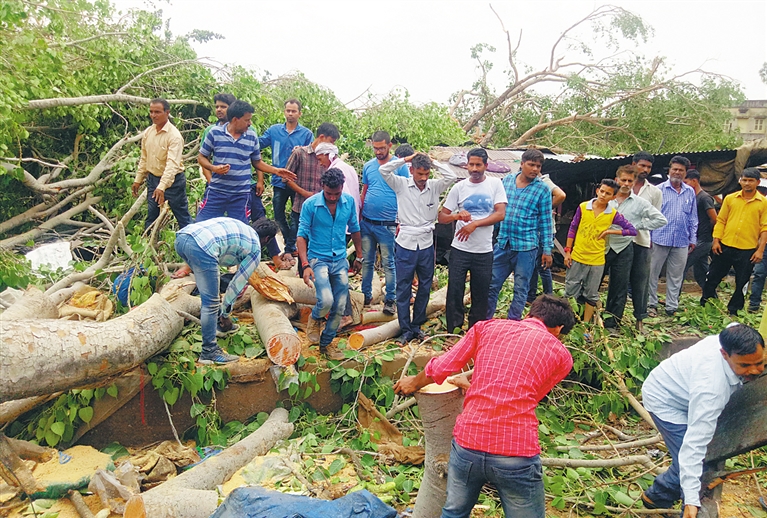 5月3日,人们在印度拉贾斯坦邦阿尔瓦尔清理倒地的树木。