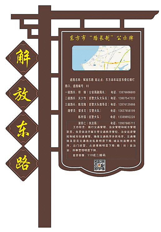 东方市主动将市综合行政执法局纳入“路长制”工作体系,实行“公安+城管”勤务模式的“路长制”,将治理重点放在汽车站、农贸市场、学校周边及市区主要道路交叉口等重点部位,以迅速反应由于占道摆摊造成的交通拥堵等突出问题。