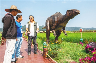 全国历年出土的277种323只恐龙造型汇集于水稻公园,依托权威的中国古生物学会打造中国恐龙户外博览基地和科普教育基地,让科普走出殿堂走进大众生活,而全部恐龙造型安放在田埂沟渠,占地面积不到一亩,实现土地资源优化利用;