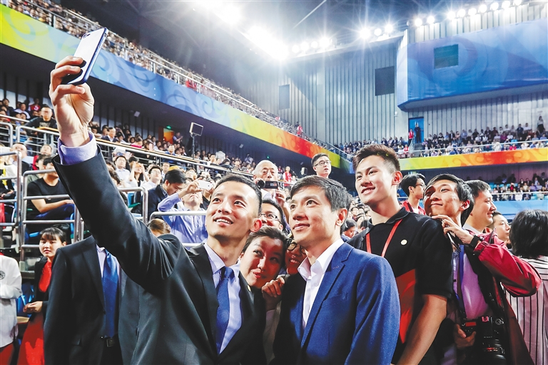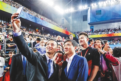 5月4日,北京大学建校120周年纪念大会在北京大学邱德拔体育馆举行,千名师生聚集北京大学为母校庆生。纪念大会后,参会的校友与北京大学校友、百度创始人、董事长兼CEO李彦宏(中)一起拍摄合影。新华社记者 沈伯韩 摄