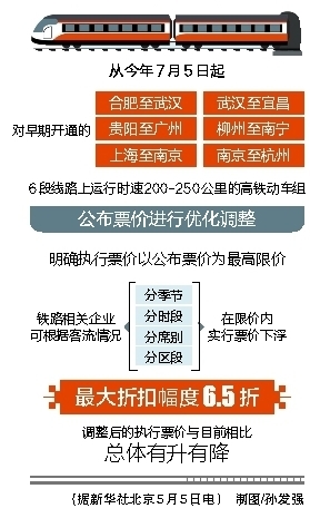 高铁票价最高可打6.5折