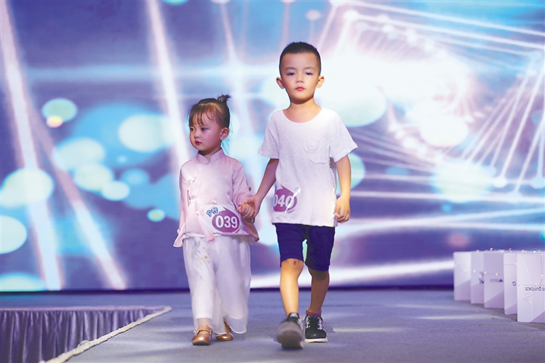 张文译(化名)今年8岁,因为帅气的长相吸引了不少叔叔阿姨为他拍照。“主办方特别安排了专业模特老师进行赛前培训,教孩子们如何展现自信。孩子每天放学匆忙吃一口饭,又开始练习台步。”张文译的妈妈说,孩子特别重视比赛。小家伙在台下表情严肃,似乎有些不苟言笑,然而登台后,张文译却一改严肃的表情,露出开心的笑容,加上利落的定点姿势,像极了一个专业的小模特。“我觉得这种类型的比赛,对于家长和孩子来说都是一种纪念,一家人共同经历这些事情,不但让孩子们对社会的接受度增加,对自己更有自信,而且对于孩子们今后的发展,也是非常有好处的。”张文译的妈妈看着儿子认真的表情,非常自豪。