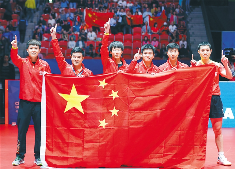 中国队当天派出的是马龙、许昕和樊振东,德国队则排出了波尔、弗兰齐斯卡、菲卢斯的阵容,名将奥恰洛夫因伤没有出场。